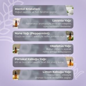 - Eucalyptus Oil → solunum açıcı, enerji verici