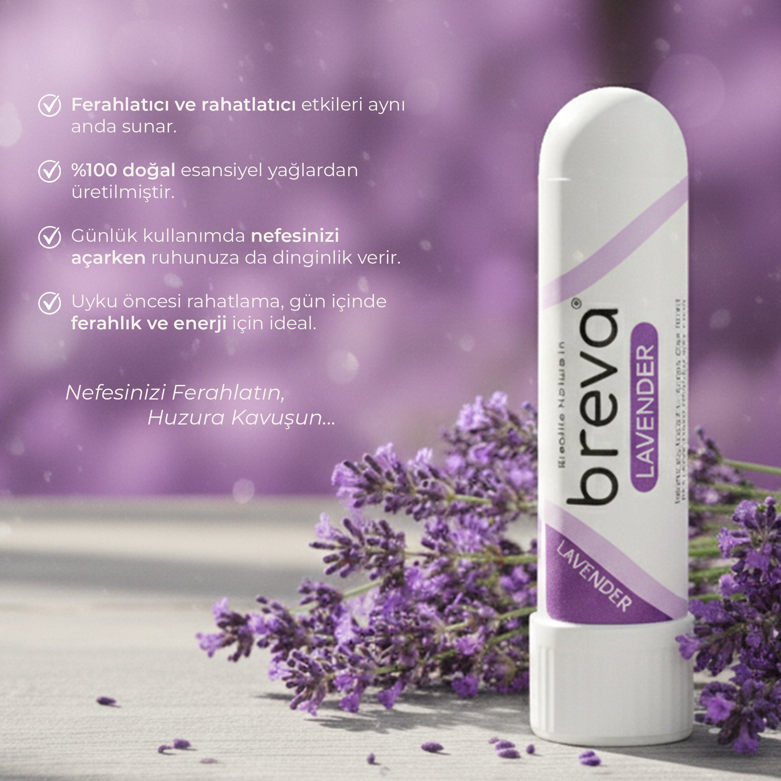 Mentol, lavanta, nane, okaliptüs ve narenciye yağlarının birleşimiyle ferahlatıcı, rahatlatıcı ve huzur verici etki sunar.